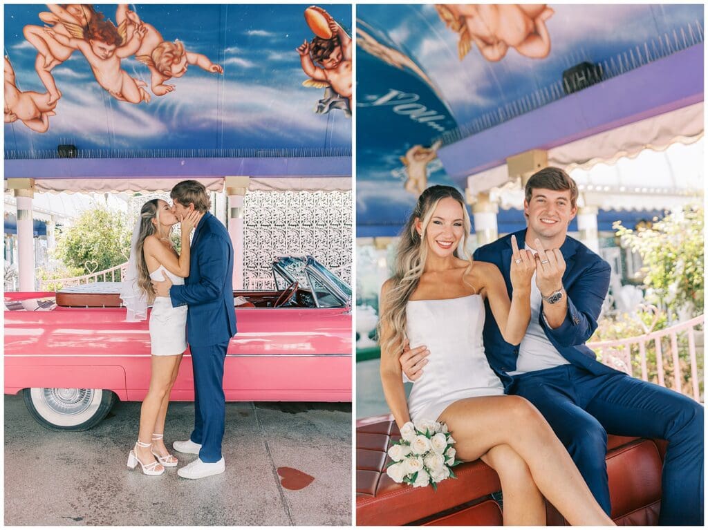 For example, the famous pink Cadillac in the drive-thru Tunnel of Love isn’t just a prop. It’s a story on wheels. Even couples not using the drive-thru often ask to take photos there. Whether it’s a playful portrait or something a little more classic, the car gives you texture, shape, and a retro vibe that looks great with soft desert light.