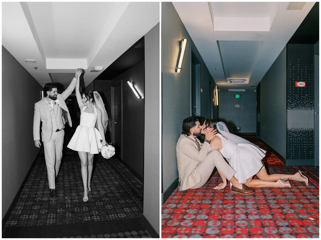 One couple who eloped downtown decided to walk through their favorite alley for part of their session. They naturally held hands, told jokes, and paused to admire the graffiti they both loved. No instructions were needed after that. The movement did all the work.