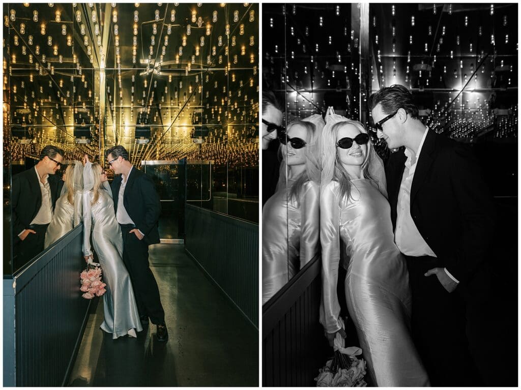 Las Vegas lets you go all in on the glam while still keeping it intimate. One couple married in a sleek suite overlooking the Strip. A floral arch stood by the window, candles flickered in the background. After they said their vows, they took photos in matching leather jackets by the lights of the boulevard. This kind of setup is all about creating a bold experience that fits your edge and elegance.